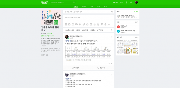2020년 9월 개설된 밴드에는 일일 농산물 가격 동향과 기상정보, 주요 병해충 방제 시기 및 요령, 농작물저장 기술, 미생물 활용 기술, 농업인 교육 일정, 최신 재배 기술 및 농작물 재배 정보 등의 영농활동에 유용한 정보들이 가득 담겨져 있다.