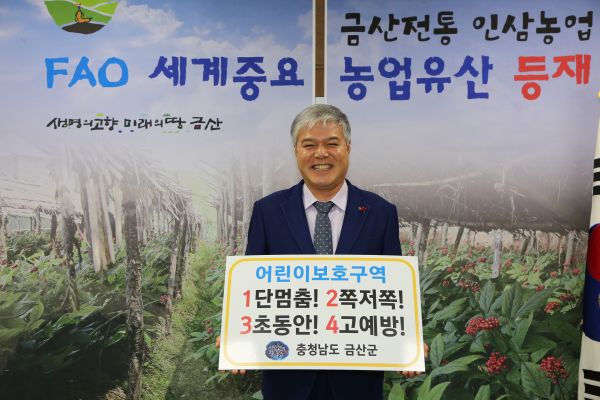 [충청뉴스큐] 문정우 금산군수가 지난 11일 어린이 보호구역내 교통안전 실천문화 정착과 교통사고 예방을 위한 어린이 교통안전 릴레이 챌린지 캠페인에 동참했다.