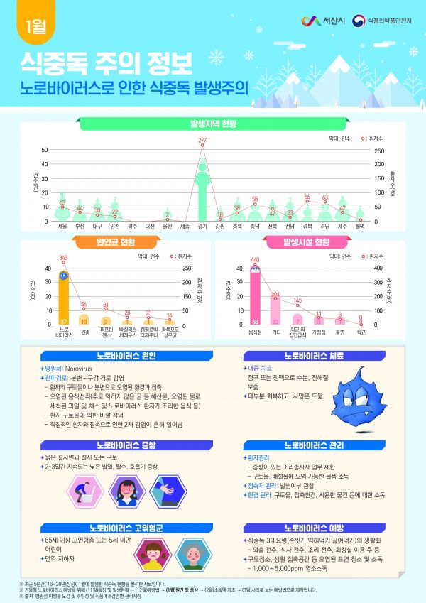[충청뉴스큐] 서산시가 겨울철 주로 발생하는 노로바이러스 식중독 환자가 전국적으로 늘고 있어 주의가 필요하다고 13일 밝혔다.