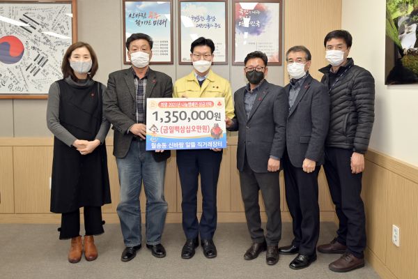 [충청뉴스큐] 공주시 ‘월송동 수요직거래장터’ 참여농가들이 코로나19로 어려움을 겪고 있는 이웃을 위해 공주시에 135만원의 성금을 기탁했다.
