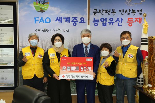 [충청뉴스큐] 대한적십자사 충남지사는 지난 12일 금산군에 250만원 상당 온열매트 50개를 기탁했다.