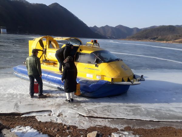 이날 투입된 공기부양정은 파손된 오대리 마을 공기부양정가 수리 완료될때까지 마을 주민의 교통수단이 된다.
