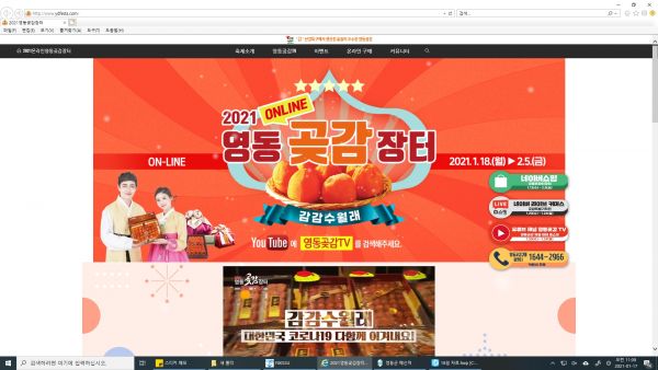2003년부터 열림 대표 겨울축제인 영동곶감축제가 코로나19 전국적 대유행에 따라 ‘영동곶감장터’로 명칭을 변경하고 다양한 플랫폼을 활용한 판매 중심의 온라인 행사로 진행된다.