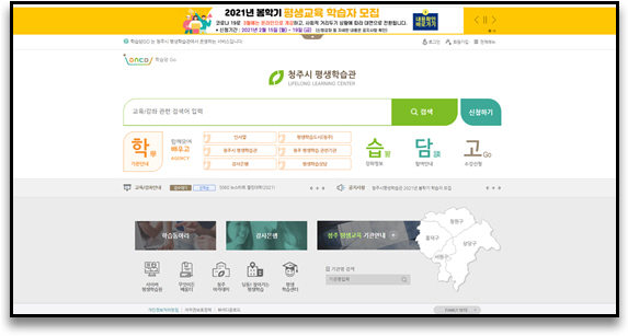 [충청뉴스큐] 청주시가 최신 디자인과 반응형 웹 기술을 적용한 평생학습관 홈페이지를 구축해 이달 새롭게 서비스를 시작했다.