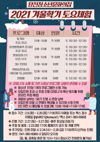 매년 진행되어 오던 겨울방학 특별체험이 2월~3월로 시기가 늦춰진 이유는 코로나19의 영향이다.
