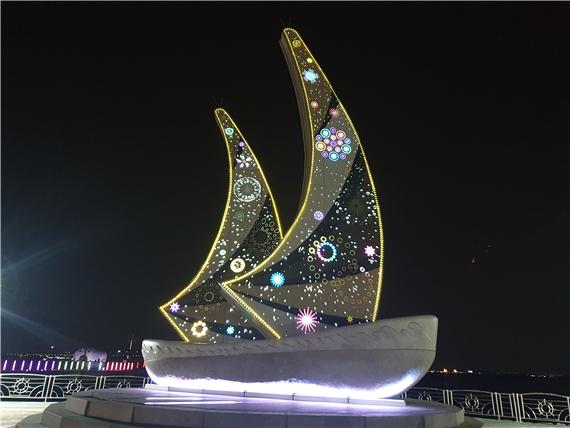 이에 시에서는 관광콘텐츠 강화사업의 일환으로 시를 상징하는 기존 돛단배 모형의 조형물에 광섬유를 설치해 형형색색의 생동감 있고 화려한 조명을 구현했다.