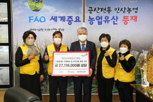 [충청뉴스큐] 대한적십자사 충남지사는 16일 금산적십자사를 통해 관내 취약계층 및 코로나19 자가격리자에게 전달해 달라며 총 2750만원 상당 식료품 800세트, 마스크 1만매, 온열매트 50개를 기탁했다.