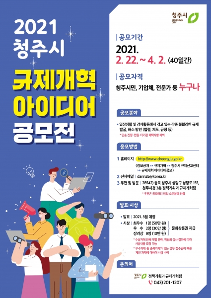 [충청뉴스큐] 청주시가 이달 22일부터 4월 2일까지 40일간 ‘2021 청주시 규제개혁 아이디어 공모전’을 개최한다.