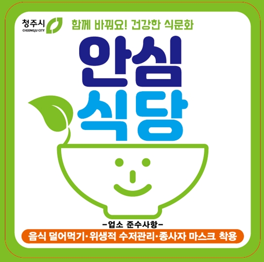 이와 더불어 청주형 안심식당으로 ‘수저통 없는 식탁 문화’를 전개하고 있으며 현재 580곳의 안심식당이 지정 · 운영 중이다.