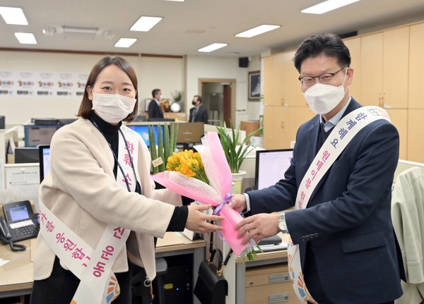 이번 행사에는 김정섭 시장과 이종운 시의회 의장을 비롯해 직원 400여명이 동참해 프리지아 550여단을 구매하며 화훼농가의 시름을 덜어줬다.