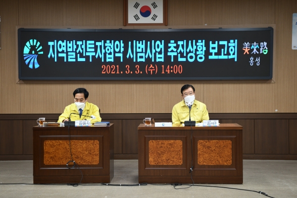 [충청뉴스큐] 홍성군은 지난 3일 지역발전투자협약 시범사업 추진 진행상황 보고회를 개최하고 소프트웨어 및 하드웨어 사업 추진 등 보고를 통해 사업이 차질 없이 추진 될 수 있도록 사전 점검하는 자리를 가졌다.