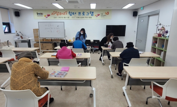 쉼터 프로그램은 치매환자의 잔존기능을 유지하고 심리적 안정감을 위해 공예치료, 작업치료, 원예치료, 실버체조 등 다양한 인지건강 프로그램으로 구성되며 매주 월, 수, 금 하루 3시간씩 진행된다.