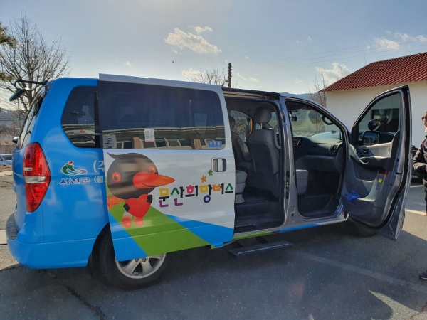 문산희망버스는 전용 호출번호를 통해 예약 및 탑승하는 ‘콜 방식’으로 1인당 이용료 100원을 받고 지역 내 생활거점을 연결하는 수요응답형 공공형버스 서비스로 현재 문산면에서 시범운행 중이다.