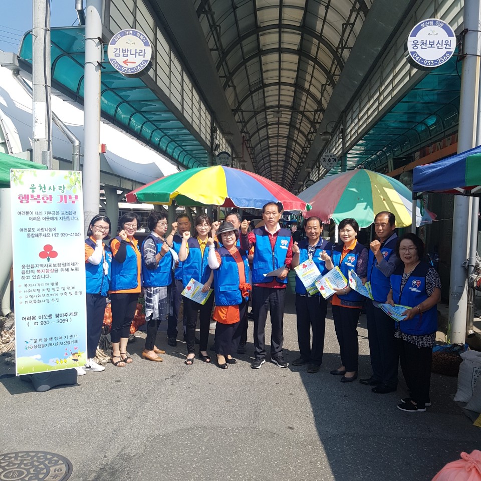 [충청뉴스큐]보령시 웅천읍은 지난 19일 웅천전통시장 일원에서 지역사회보장협의체와 함께 ‘웅천사랑 행복한 기부’홍보 활동을 펼쳤다.