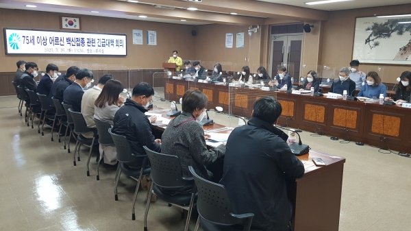 [충청뉴스큐] 홍성군은 16일 오후 1시 30분 군청 회의실에서 ‘75세 이상 어르신 대상’ 코로나19 백신 접종 관계자 긴급 대책 회의를 개최하고 신속하고 정확한 접종 체계를 구축해 군민들이 안전하게 접종을 마칠 수 있도록 온 행정력을 집중한다고 밝혔다.