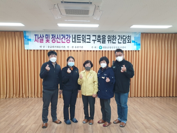 [충청뉴스큐] 충북 영동군 정신건강복지센터는 지난 17일 18일 이틀간 자살예방 네트워크 구축을 위한 간담회를 실시했다고 밝혔다.