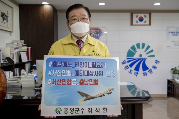 [충청뉴스큐] 김석환 홍성군수는 지난 17일 지역균형발전과 충남도의 교통인프라 확충을 위한 ‘충남에도 민항이 필요해’ 챌린지에 동참했다.