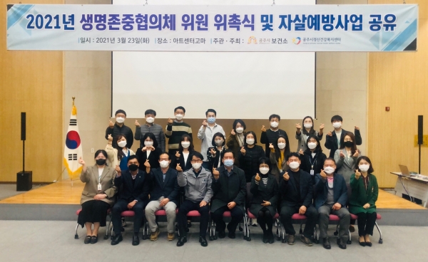 이날 행사는 공주시보건소, 소방서 경찰서 등 관내 20개 유관기관·단체 36명의 위원 위촉식과 함께 2021년 자살예방사업에 대한 공유의 시간을 가졌다.