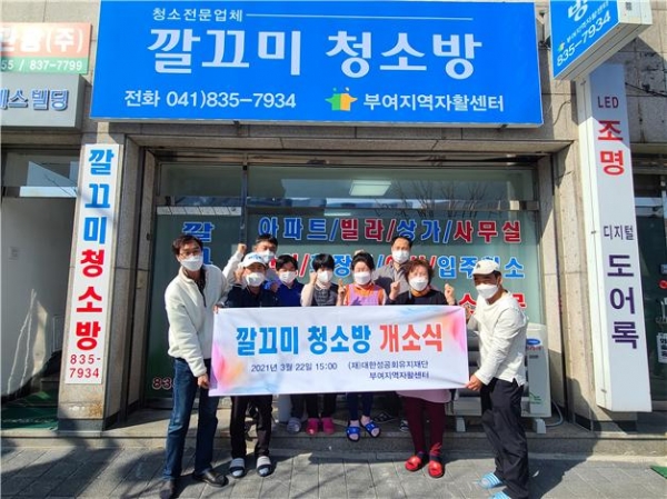 [충청뉴스큐] 부여지역자활센터는 지난 23일 부여읍 계백로에 위치한 ‘깔끄미 청소방’사업단을 오픈했다고 밝혔다.