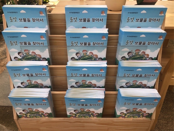 ‘들빛 보물을 찾아서’은 도시농업문화공간 ‘들빛’에서 체험교육과 함께 활용되는 책으로 최근 기후변화와 미세먼지 등 범지구적인 환경문제로 야외활동에 어려움을 겪고 있을 아동, 청소년들에게 사계절 교육과 체험교육에 활용을 할 수 있도록 제작됐다.