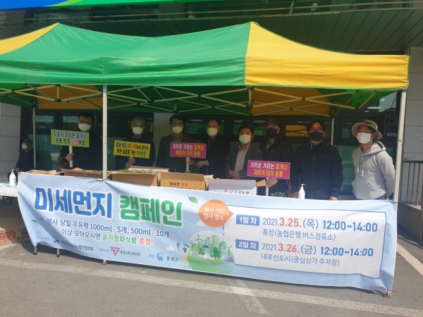 [충청뉴스큐] 홍성군과 홍성군지속가능발전협의회는 생활 속 미세먼지 줄이기 참여를 유도하기 위해 지난 25일과 26일 양일간 미세먼지 캠페인 활동을 실시했다.