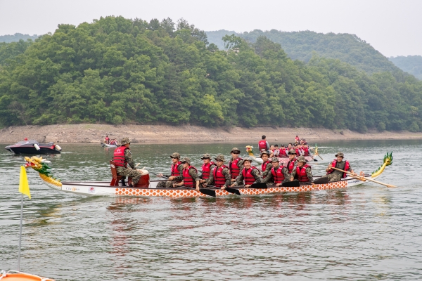 드래곤보트는 12명이 한 팀이 되어 노를 젓는 수상스포츠로 상호 간에 협동과 단결심을 기를 수 있다.