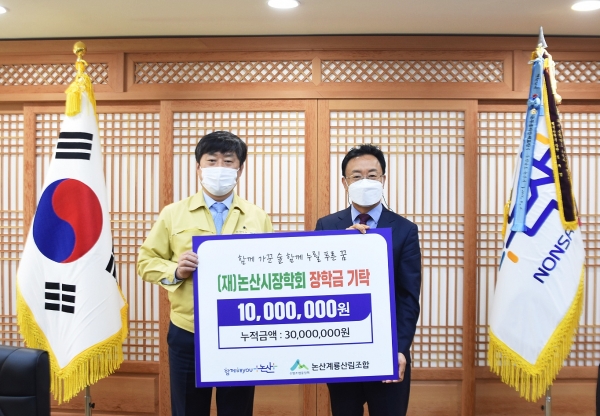 또한 논산계룡산림조합도 논산시장학회에 장학금 1천만원을 기탁, 현재 누적 3천만원의 장학금을 기탁하는 등 지역 꿈나무 인재 육성에 동참하고 있다.