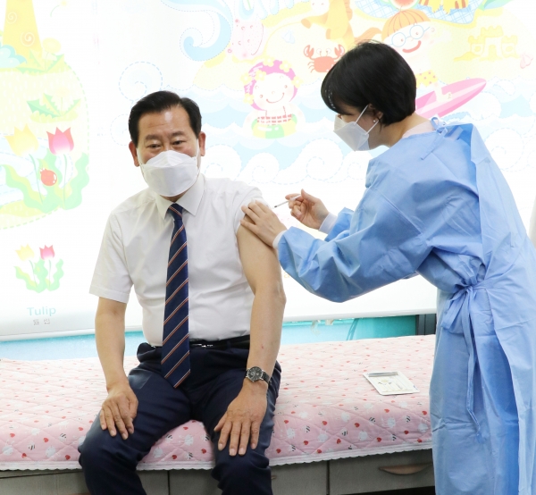 [충청뉴스큐] 김재종 옥천군수는 2일 오전 옥천군 보건소에서 아스트라제네카 백신을 접종했다.