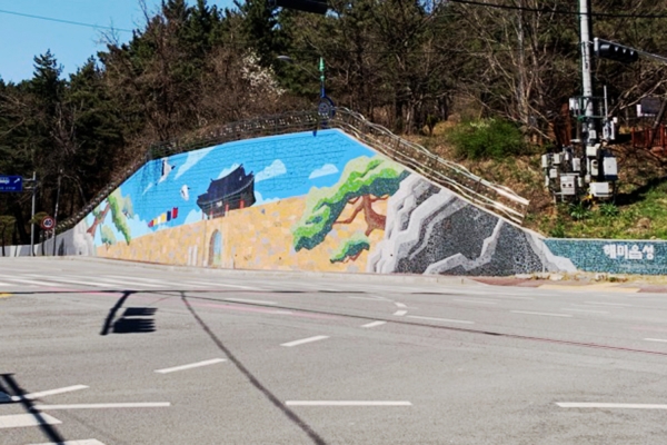 대산목 삼거리 옹벽은 그동안 콘크리트 색으로 차갑고 어두운 분위기를 조성해왔다.