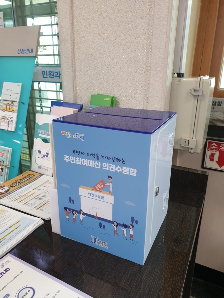 또한, 수렴함이 설치된 증평군청 민원과, 증평읍, 도안면, 군립도서관, 여성회관 총 5개 기관에 설문서와 제안사업 공모서식을 함께 비치하고 각종 회의 등 개최 시 홍보를 통해 군민 참여율을 제고 할 계획이라고 전했다.