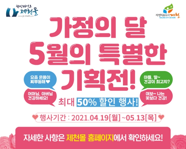 [충청뉴스큐] 한방바이오제천몰은 5월 가정의 달을 맞이해 60여개의 우수 한방 제품을 최대 51%까지 할인한다.