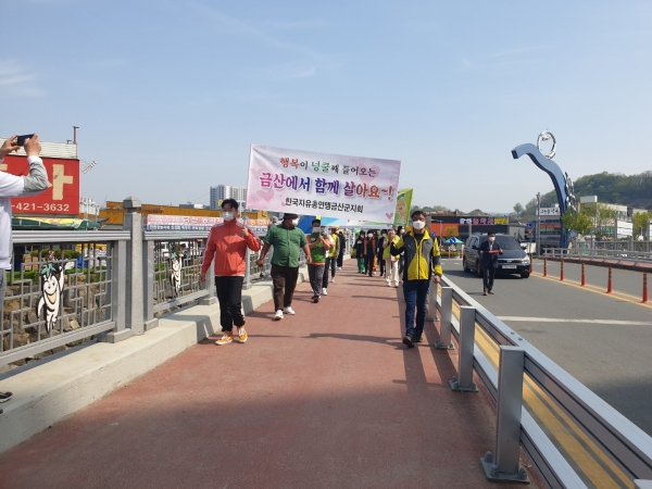 첫 출발로 지난 21일 한국자유총연맹금산군지회가 금산읍 일원에서 캠페인 활동을 펼쳤다.