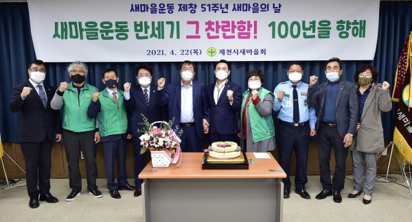[충청뉴스큐] 제천시새마을회는 지난 22일 새마을회관에서 ‘새마을운동 제창 51주년 새마을의 날’ 행사를 가졌다 이날 행사는 이상천 제천시장, 배동만 제천시의회의장을 비롯한 읍면동 새마을지도자 등 100여명이 참석한 가운데, 코로나19 방역수칙을 준수하고 규모를 축소해 진행됐다.