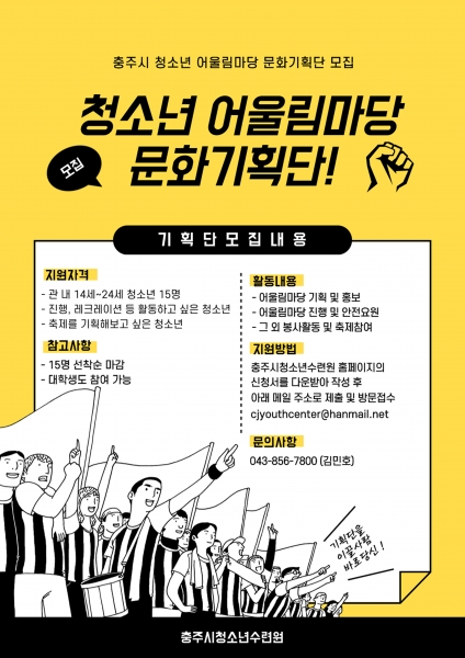 충주시청소년수련원은 오는 30일까지 ‘2021년 충주시 청소년어울림마당 문화기획단’을 모집한다고 밝혔다.