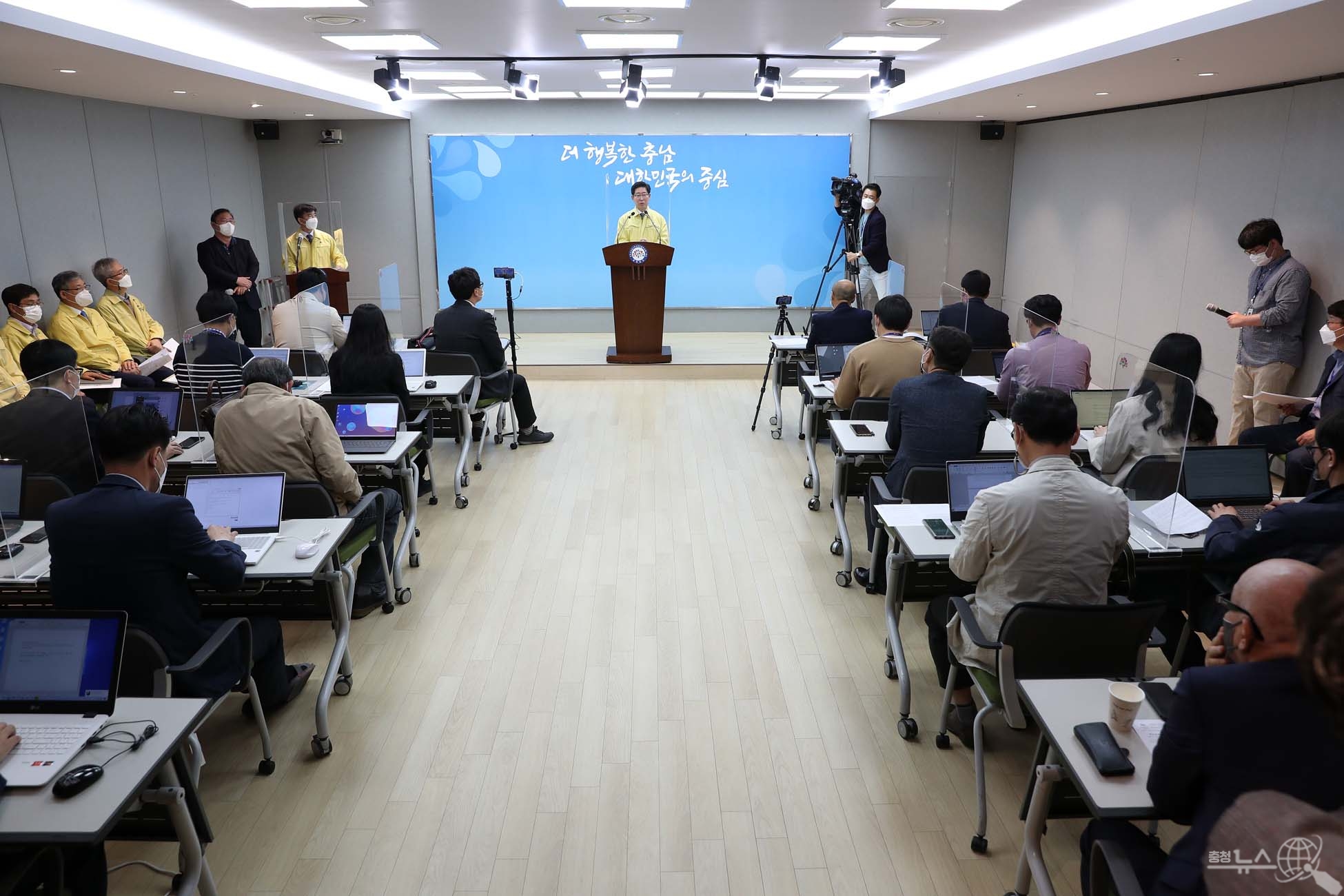 계룡세계군문화엑스포조직위원회 공동위원장인 양승조 지사는 26일 도청 프레스센터에서 기자회견을 열고 “2021 계룡세계군문화엑스포를 1년 연기하기로 최종 결정했다”고 밝혔다.
