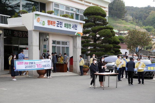 [충청뉴스큐] 서천군은 이달 27일 군 청사 정문에서 청렴하고 투명한 공직문화 조성을 위해 출근하는 전 직원을 대상으로 청렴 실천 캠페인을 실시했다.