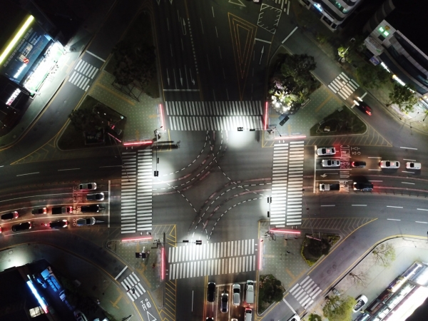 실제 드론을 띄워 하늘에서 바닥신호등을 내려다보니, 운전자와 보행자들에게 넓은 시야를 제공했다.