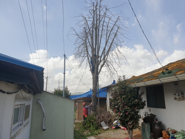 군은 독거노인이나 기초생활수급자 장애인 등 취약계층과 주택과 접해있는 위험수목을 우선으로 사업을 진행하고 있으며 향후 축사, 창고 전선 등에 접한 위험수목 제거도 점차적으로 확대해 나갈 예정이다.