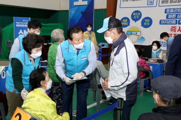 군은 75세 이상 어르신들의 접종편의를 위해 마을별 버스를 운행하고 보건 인력이 버스에 탑승해 접종 후 일어날 수 있는 이상반응에 대처하고 어르신들의 안전한 귀가를 도왔다.