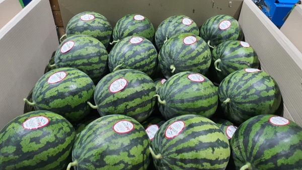 이날 30여 농가로 구성된 생산자조직은 알맞은 기온과 토양 여건, 높은 재배기술로 100여 일간 공들여 재배한 수박을 출하하면서 소비자들의 사랑을 기대했다.
