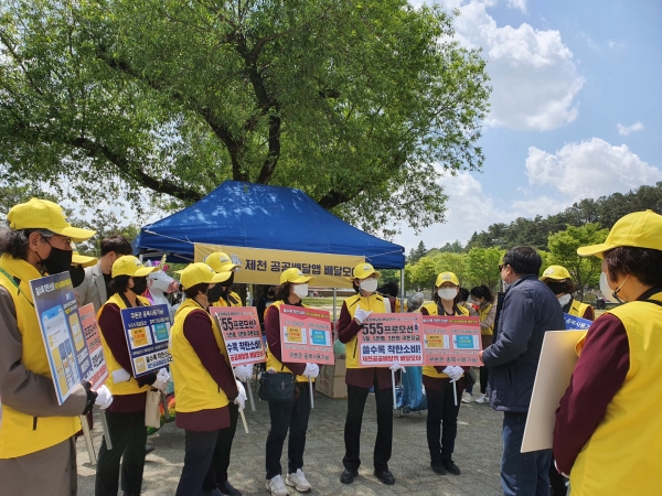 [충청뉴스큐] 제천시가 지난 5일 어린이날을 맞아 많은 시민들이 찾은 의림지 일원에서 공공배달앱 ‘배달모아’ 대시민 홍보활동을 실시했다.