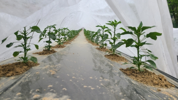 센터는 지난 4월 올해 고추 정식시기가 앞당겨짐에 따라 발생하는 기상재해를 줄이기 위해서 청성면 삼남리 소재 농가 1개소에‘고추 막덮기 부직포 재배 실증시험’을 추진했다.