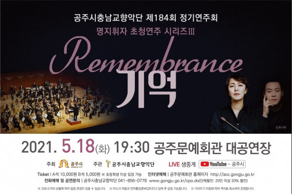 [충청뉴스큐] 공주시 충남교향악단은 오는 18일 저녁 7시 30분 공주문예회관 대공연장에서 제184회 정기연주회 ‘기억’을 개최한다.