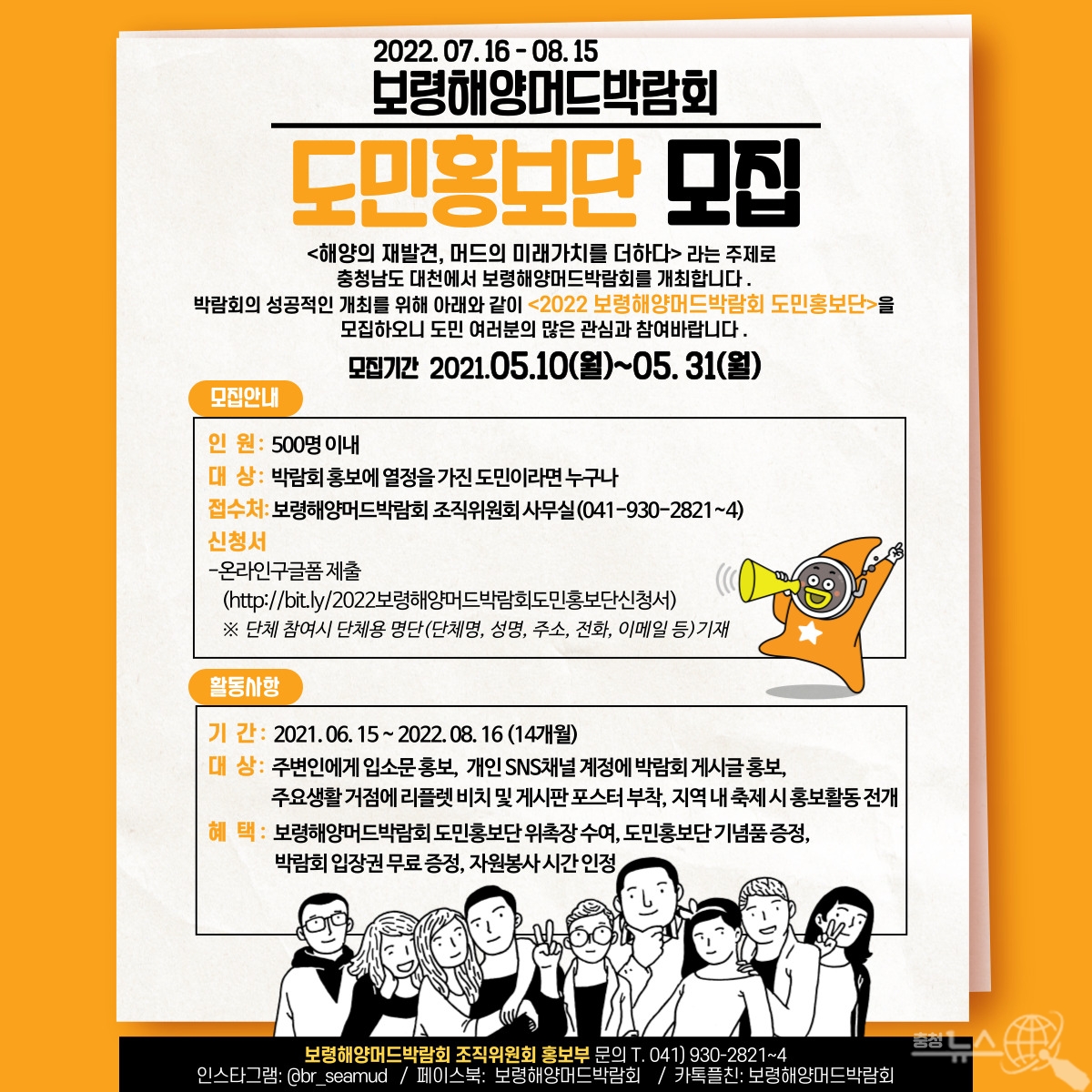2022보령해양머드박람회 조직위원회는 박람회 붐 조성과 도민 공감대 형성을 위해 ‘도민홍보단’을 모집한다“고 12일 밝혔다.