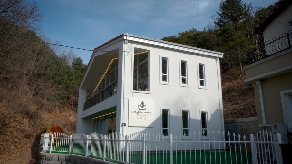 ‘따뜻함’을 의미하는 카페온은 영동읍 동정로 안길, 무량산 등산로 입구 부근에 자리잡았다.