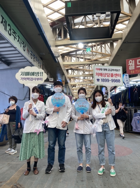 논산시 치매안심센터 직원들은 13일 오전 화지중앙시장을 찾아 시장상인 및 방문객 1천여명을 대상으로 치매 조기검진 및 인식개선 치매안심센터 사업 치매상담 콜센터 등을 안내하며 리플릿과 홍보용품을 배부했다.