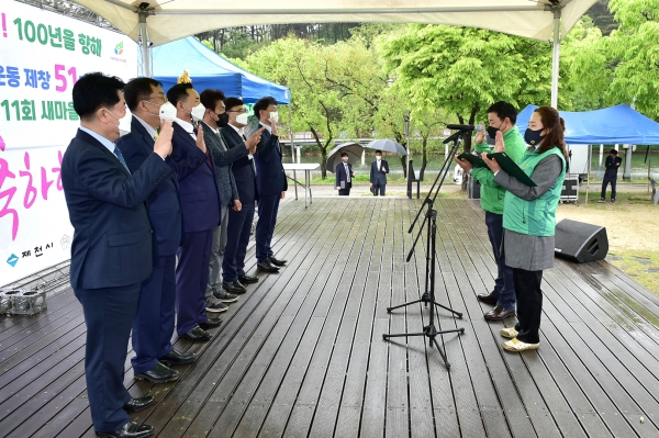 이날 행사는 이상천 제천시장과 배동만 제천시의회의장을 비롯한 시의원, 읍면동 새마을지도자 등 200여명이 참석한 가운데 사회적 거리두기 및 방역지침을 준수해 진행됐다.