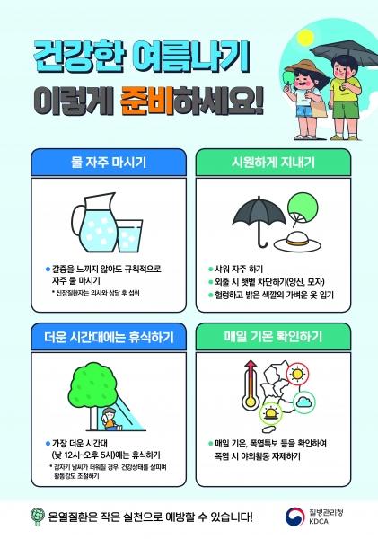 이종천 보건소장은 “초여름 갑작스러운 이른 더위에 신체가 적응하지 못해 온열질환이 발생할 수 있는 만큼 각별한 주의와 건강수칙 준수가 필요하다”고 말하며 “어린이와 노약자, 만성질환자는 온열질환에 취약한 만큼 본인은 물론 보호자와 주변 이웃이 각별한 관심을 기울여 줄 것”을 당부했다.
