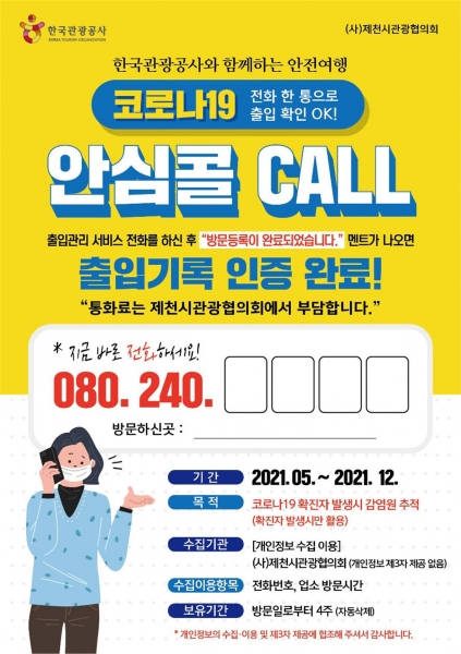 [충청뉴스큐] 제천시가 전화 한 통으로 간단히 출입기록을 등록하는 ‘방역 안심콜 출입관리 시스템’을 관광지까지 확대한다.