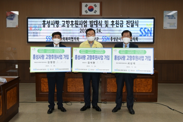 한국사회복지협의회와 홍성군이 함께 추진하는 홍성사랑 고향후원사업은 홍성군민을 포함, 전국의 홍성군을 사랑하는 후원자를 발굴해 후원금을 모으고 이를 지역저소득층의 자립, 취약계층 청년취업, 홀몸 어르신 의료 등 다양한 복지지원 사업에 활용하는 사업이다.